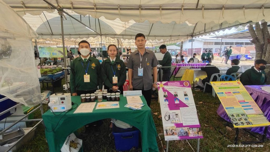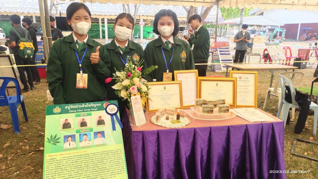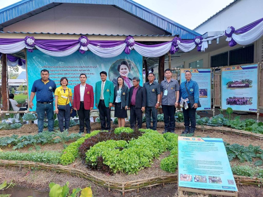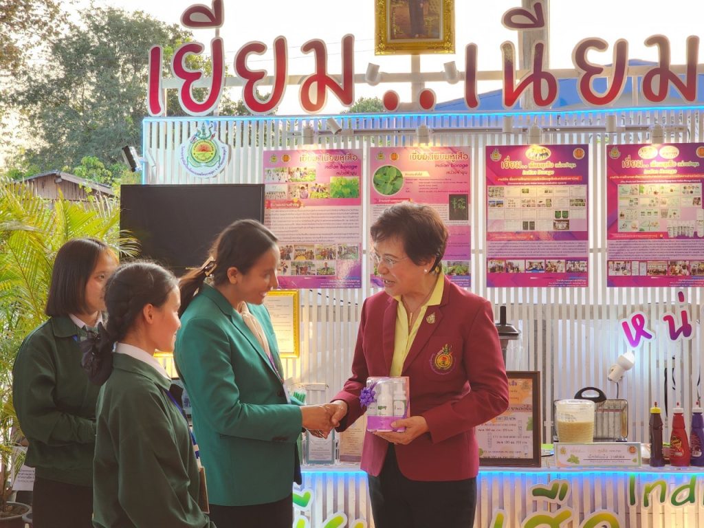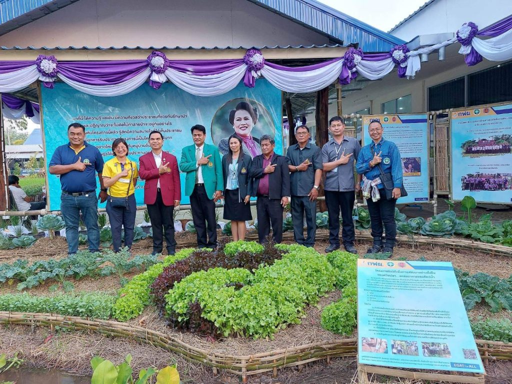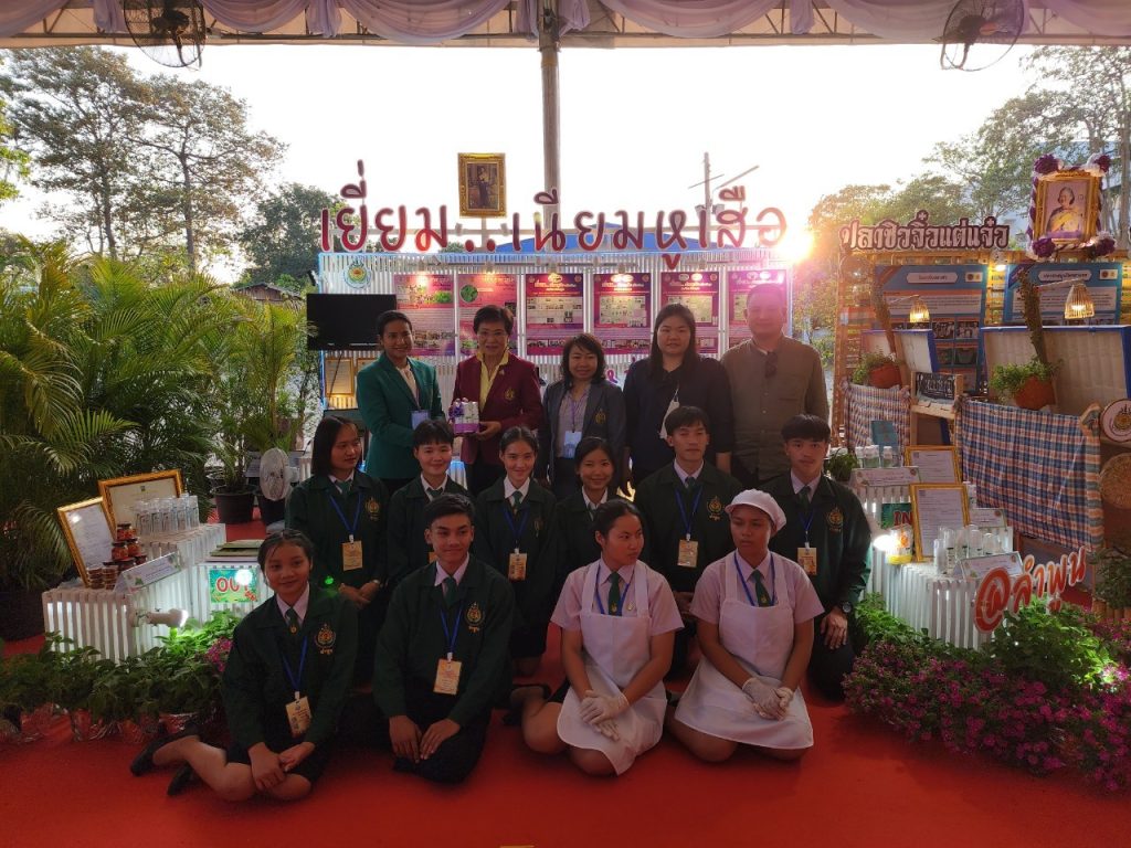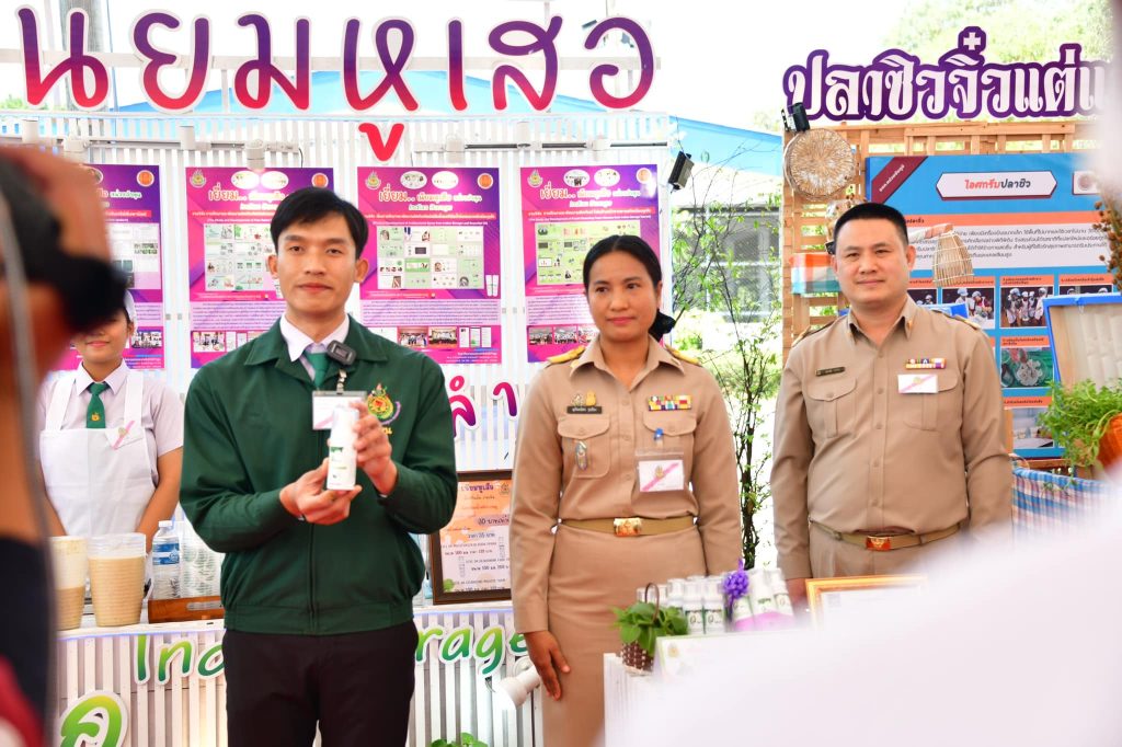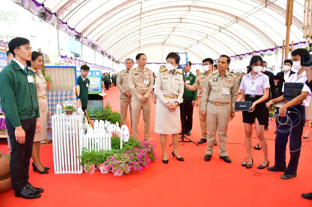 ต่อจากนั้น ว่าที่ร้อยตรีธนุ วงษ์จินดา เลขาธิการคณะกรรมการการอาชีวศึกษา กราบบังคมทูลรายงานโครงการข้าวไทย ซึ่งเป็นความร่วมมือกับกรมข้าวไทยและมูลนิธิข้าวไทย จัดค่ายข้าวไทย 4 ภาค ให้แก่เยาวชนและผู้เรียนอาชีวะเกษตร เพื่อเผยแพร่องค์ความรู้เรื่องข้าว งานวิจัยและเทคโนโลยีการผลิตข้าว นอกจากนี้ ทรงทอดพระเนตรนิทรรศการเทิดพระเกียรติ พระบาทสมเด็จพระบรมชนกาธิเบศร มหาภูมิพลอดุยเดชมหาราช บรมนาถบพิตร (รัชกาลที่ 9) พระบาทสมเด็จพระปรเมนทรรามาธิบดีศรีสินทรมหาวชิราลงกรณ พระวชิรเกล้าเจ้าอยู่หัว (รัชกาลที่ 10) ด้านการศึกษา นิทรรศการเทิดพระเกียรติเจ้าฟ้านักอนุรักษ์ นิทรรศการนโยบายด้านการศึกษาของกระทรวงศึกษาธิการ และสำนักงานคณะกรรมการการอาชีวศึกษา และสถาบันการอาชีวศึกษาเกษตร 4 ภาค นิทรรศการหน่วย อกท. ดีเด่น 4 หน่วย นิทรรศการสมาชิก อกท. ดีเด่น 8 คน นิทรรศการสมาชิกพัฒนาสังคมและบริการชุมชนดีเด่น 8 คน นิทรรศการสมาชิกศิษย์เก่า อกท. ดีเด่น 4 คน นิทรรศการทางการเกษตรของหน่วย อกท. 12 หน่วย อาทิ หน่วยชัยภูมิ วิทยาลัยเกษตรและเทคโนโลยี (วษท.) ชัยภูมิ “ปลาซิวจิ๋วแต่แจ๋ว”, หน่วยลำพูน วษท. ลำพูน “เยี่ยม…เนียมหูเสือ, หน่วยบางพูน วิทยาลัยการอาชีวศึกษา (วกศ.) ปทุมธานี “เล้านางรม : Smart Farming Golden Oyster Mushroom”, หน่วยตาก วษท. ตาก “พริกดอย อร่อยดี”, หน่วยนครราชสีมา วษท.นครราชสีมา “สะเดาเศรษฐี” และหน่วยพรานทะเล วิทยาลัยประมงติณสูลานนท์ “สองใย สองเล” เป็นต้น นิทรรศการสิ่งประดิษฐ์ทางการเกษตร นิทรรศการความร่วมมือจัดการศึกษาไทย-เดนมาร์ค นิทรรศการโครงการบริหารจัดการน้ำ นิทรรศการไก่ชีหลง (วษท.ยโสธร) โครงการอาหารกลางวัน และโครงการจัดการศึกษาในโรงเรียนตำรวจตระเวนชายแดน