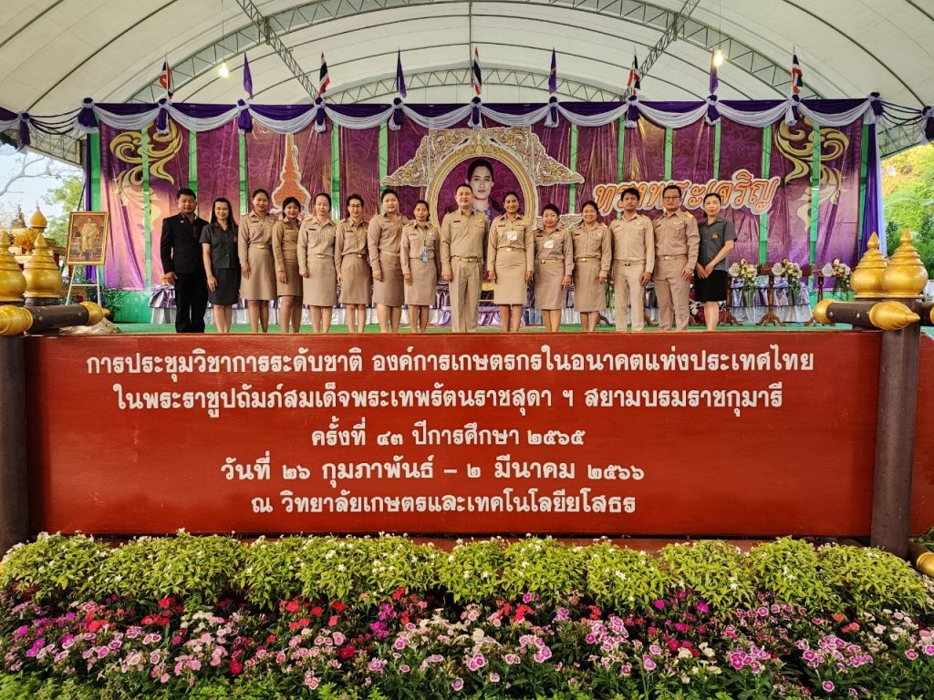 ทั้งนี้ ดร.คุณหญิงกัลยา โสภณพนิช รัฐมนตรีช่วยว่าการกระทรวงศึกษาธิการ กราบบังคมทูลถวายรายงานว่า นับเป็นพระมหากรุณาธิคุณ อย่างหาที่สุดมิได้และเป็นความปลาบปลื้มปิติเป็นล้นพ้น สมเด็จพระกนิษฐาธิราชเจ้า กรมสมเด็จพระเทพรัตนราชสุดาฯ สยามบรมราชกุมารี ทรงเป็นองค์ประธานพิธีเปิดการประชุมวิชาการ อกท. ระดับชาติ ครั้งที่ 43 โดย อทก. ได้ดำเนินกิจกรรมมาอย่างต่อเนื่อง เป็นกลไกที่สำคัญในการพัฒนานักเรียนนักศึกษาอาชีวะเกษตร ภายใต้คติพจน์ขององค์การฯ ที่สมาชิกทุกคนต้องยึดมั่นถือปฏิบัติให้บรรลุผลตามวัตถุประสงค์ และสนองตอบนโยบายการพัฒนากำลังคนของประเทศ ที่มุ่งเน้นผลิตและพัฒนากำลังคนอาชีวศึกษาสมรรถนะสูงในการพัฒนาประเทศ พัฒนาทักษะอาชีพและเพิ่มขีดความสามารถในการแข่งขัน ตามแนวคิดประเทศไทยมั่นคง ร่ำรวย ด้วยมืออาชีวะ ผู้เรียนอาชีวศึกษามีงานทำ และองค์การได้น้อมนำพระราชดำรัสของใต้ฝ่าละอองพระบาทที่พระราชทานไว้ให้กับสมาชิก อกท. ไปดำเนินโครงการสนองแนวพระราชดำริหลายโครงการ เช่น โครงการพัฒนาเด็กและเยาวชนในถิ่นทุรกันดาร โครงการพี่ช่วยน้อง และโครงการอนุรักษ์พันธุกรรมพืช เป็นต้น การประชุมวิชาการ อกท. ในครั้งนี้ องค์การฯ ได้นำผลสำเร็จในการสร้างสมาชิกผู้นำขององค์การ นิทรรศการทางการเกษตร การแข่งขันทักษะวิชาชีพ การยกย่องเชิดชูเกียรติสมาชิกปัจจุบันดีเด่น ศิษย์เก่าดีเด่น การแสดงผลผลิตและผลิตภัณฑ์ทางการเกษตร การบริการฝึกอาชีพ การสัมมนาผลงานทางวิชาการ การแสดงนันทนาการ นอกจากนี้แล้วองค์การฯ ยังได้ประสานงานความร่วมมือกับชุมชนในท้องถิ่น ทั้งภาครัฐและเอกชน มาร่วมจัดกิจกรรมแสดงผลงานให้นักเรียน นักศึกษา เกษตรกรและประชาชน ได้รับความรู้ทางวิชาการและนวัตกรรมทางการเกษตรเกี่ยวกับความก้าวหน้าทางการเกษตรสมัยใหม่ อันจะเป็นประโยชน์ต่อการนำไปประกอบอาชีพด้านการเกษตรยุคใหม่อีกด้วย