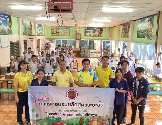 วันที่ 21 สิงหาคม 2567 ดร.จักรกฤษณ์ ทิพเลิศ ผู้อำนวยการวิทยาลัยเกษตรและเทคโนโลยีลำพูน ได้มอบหมายให้แผนกวิชาพืชศาสตร์ นำทีมโดยรองผู้อำนวยการฝ่ายวิชาการ หัวหน้าแผนกวิชาพืชศาสตร์ หัวหน้างานระยะสั้น ครูประจำแผนกวิชา และตัวแทนนักศึกษา ให้บริการอบรมโครงการหลักสูตรระยะสั้น หลักสูตรการเพาะเห็ดเศรษฐกิจ การผลิตไม้กระถางเพื่อการค้า และหลักสูตรผักไร้ดินไฮโดรบอกซ์ ให้แก่นักเรียน ระดับชั้นมัธยมศึกษาตอนต้น ณ โรงเรียนบ้านดงสารภี อ.แม่ทา จ.ลำพูน