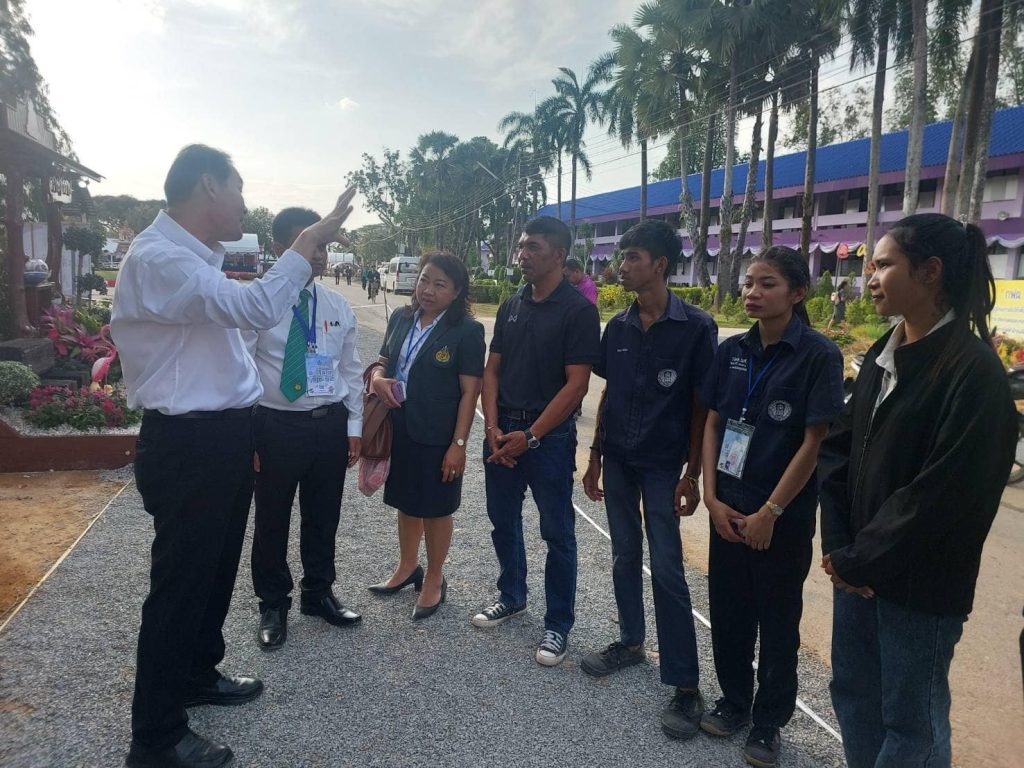 วันที่ 4 กุมภาพันธ์ 2568 นางศรีนรินทร์ ริยาพันธ์ รองผู้อำนวยการวิทยาลัยรักษาการในตำแหน่ง ผู้อำนวยการวิทยาลัยเกษตรและเทคโนโลยีลำพูน ปฏิบัติหน้าที่เลขานุการ ฝ่ายจัดการแข่งขันสาขาศิลปเกษตร นำท่านรองเลขาธิการคณะกรรมการการอาชีวศึกษา นายณรงค์ชัยรุจิทรัพย์ และนายสง่าแต่เชื้อสาย เข้าชมการแข่งขันทักษะการสวนหย่อม และได้พบปะคณะกรรมการตัดสินทักษะการจัดสวนหย่อมและให้กำลังใจผู้เข้าแข่งขัน ในการประชุมวิชาการ อกท. ระดับชาติ ครั้งที่ 45 ณ วิทยาลัยเกษตรและเทคโนโลยีสตูล