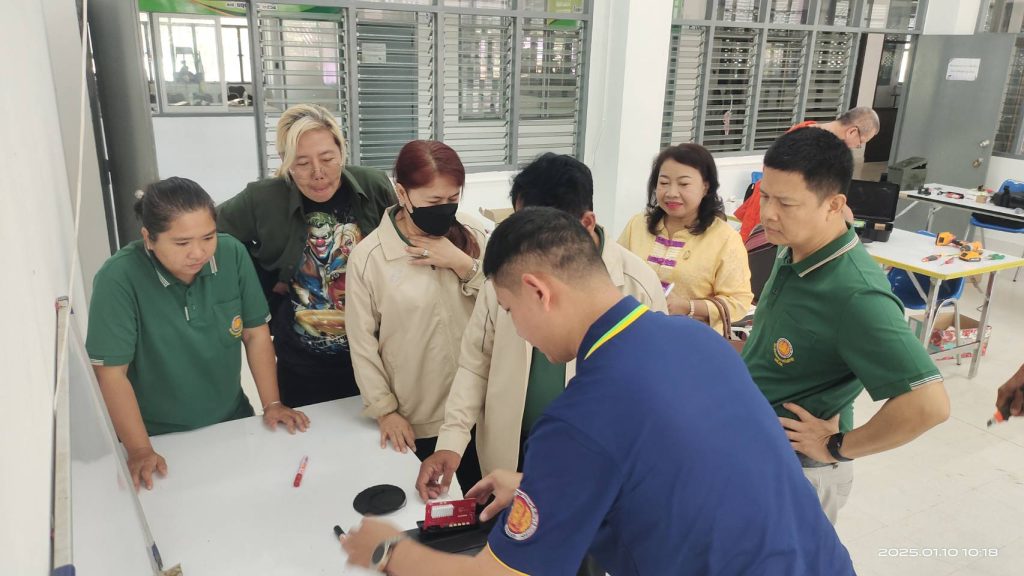 วันที่ 10 มกราคม 2568 นางศรีนรินทร์ ริยาพันธ์ รองผู้อำนวยการวิทยาลัยเกษตรและเทคโนโลยีลำพูน เข้าตรวจเยี่ยมและให้กำลังใจ ฝ่ายวิชาการ งานโครงการอาชีวศึกษาเพื่อการพัฒนาชนบท อศ.กช ได้จัดการเรียนการสอนแบบบูรณาการ การสร้างสิ่งประดิษฐ์ กระเป๋าพลังงานแสงอาทิตย์เพื่อการเกษตร รูปแบบ Hybrid จัดการเรียนการสอนโดย หม่อมหลวงปรีชา เกษมสันต์ ณ อาคาร Excellent Center วิทยาลัยเกษตรและเทคโนโลยีลำพูน