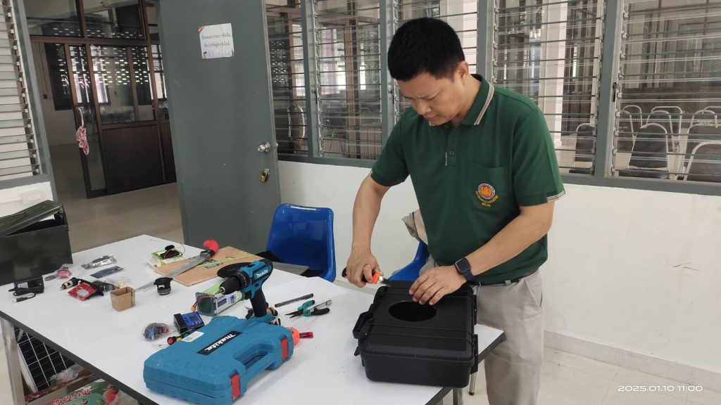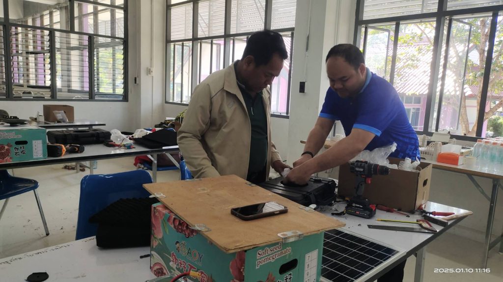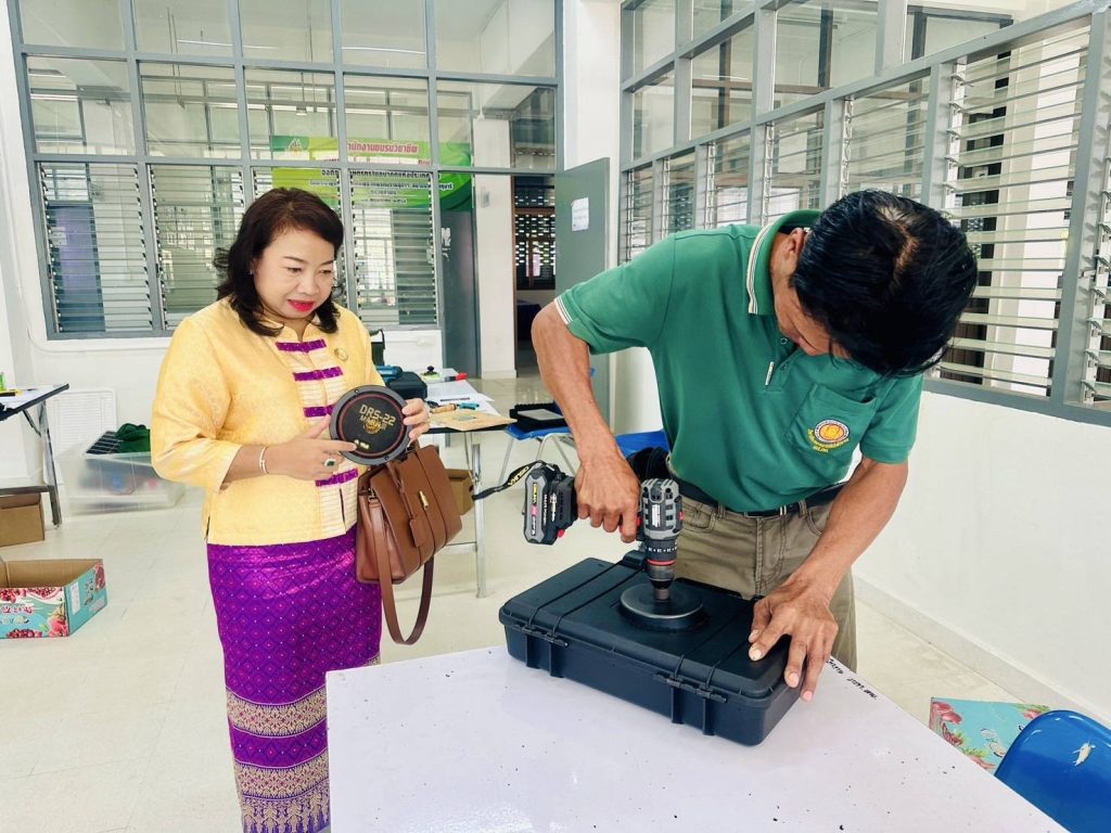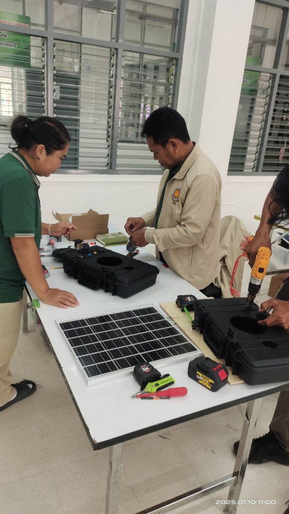 เข้าตรวจเยี่ยมและให้กำลังใจ ฝ่ายวิชาการ งานโครงการอาชีวศึกษาเพื่อการพัฒนาชนบท อศ.กช สอนแบบบูรณาการ การสร้างสิ่งประดิษฐ์ กระเป๋าพลังงานแสงอาทิตย์เพื่อการเกษตร รูปแบบ Hybrid