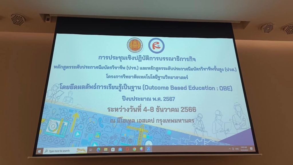 นายจักรกฤษณ์ ทิพเลิศ ผู้อำนวยการวิทยาลัยเกษตรและเทคโนโลยีลำพูน มอบหมายให้นางสาวนิพภาพร จงภักดี ครู ทำหน้าที่รองผู้อำนวยการฝ่ายวิชาการ และคณะครู เข้าร่วมการประชุมเชิงปฏิบัติการบรรณาธิการหลักสูตร ระดับประกาศนียบัตรวิชาชีพ (ปวช.) และหลักสูตรระดับประกาศนียบัตรวิชาชีพชั้นสูง (ปวส.) โครงการวิทยาลัยเทคโนโลยีฐานวิทยาศาสตร์ โดยยึดผลลัพธ์การเรียนรู้เป็นฐาน (Outcome Based Education: OBE) ปีงบประมาณ 2567 ระหว่างวันที่ 4-8 ธันวาคม 2566 ณ มีโฮเทล เอสเคป กรุงเทพมหานคร