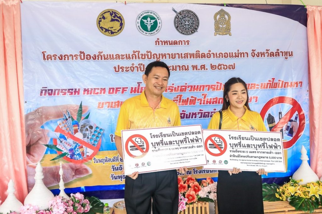 เข้าร่วมกิจกรรมครบ kick off นโยบายเร่งด่วนป้องกันและแก้ไขปัญหายาเสพติดและบุหรี่ไฟฟ้าในสถานศึกษา อำเภอแม่ทา จังหวัดลำพูน ประจำปีงบประมาณ 2567