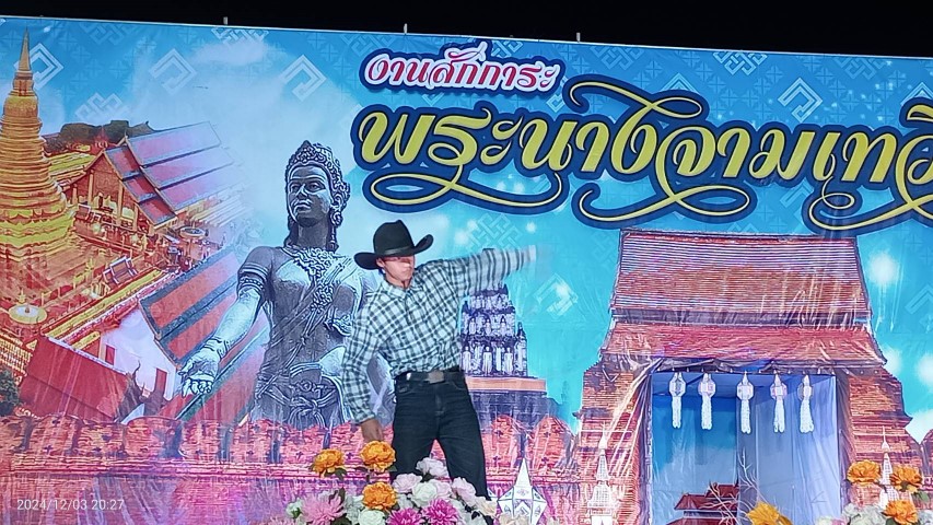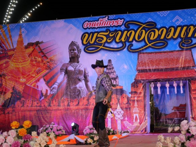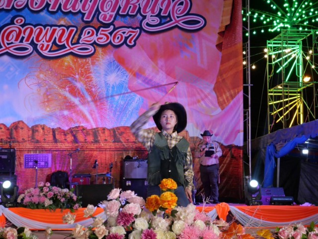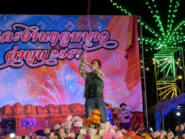 เข้าร่วมกิจกรรมการแสดง การฟาดแซ้ในกิจกรรม Cowboy Night ณ เวทีกลาง งานสักการะพระนางจามเทวี และงานฤดูหนาวจังหวัดลำพูน