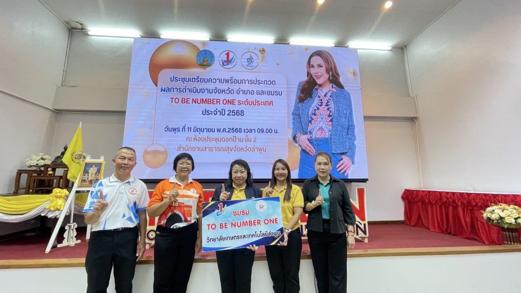 วันที่ 11 มิถุนายน 2568 ดร.ธีรวุธ ยะอูป ผู้อำนวยการวิทยาลัยเกษตรและเทคโนโลยีลำพูน ได้มอบหมายให้ นางศรีนรินทร์ ริยาพันธ์ รองผู้อำนวยการฝ่ายพัฒนากิจการนักเรียน นักศึกษา พร้อมด้วยคณะครูผู้ดูแลชมรม TO BE NUMBER ONE วิทยาลัยเกษตรและเทคโนโลยีลำพูน เข้าร่วมประชุมเตรียมความพร้อมการประกวดผลการดำเนินงานจังหวัด อำเภอ และชมรม TO BE NUMBER ONE ระดับประเทศ ประจำปี 2568 โดยมี นายแพทย์ประเสริฐ กิจสุวรรณรัตน์ นายแพทย์สาธารณสุขจังหวัดลำพูน เป็นประธานในพิธีดังกล่าวฯ ณ ห้องประชุมดอกป๊าน ชั้น 2 สำนักงานสาธารณสุข จังหวัดลำพูน