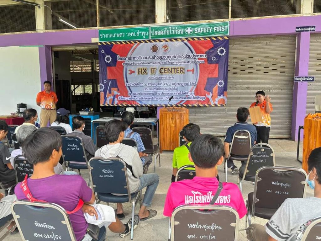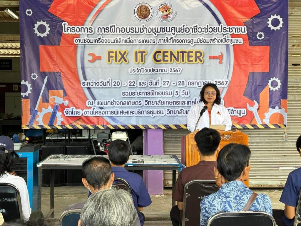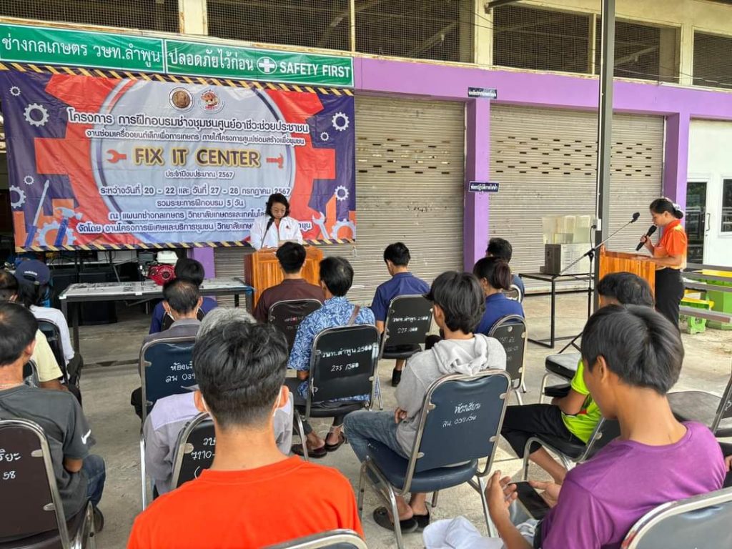เปิดงาน “โครงการการฝึกอบรมช่างชุมชนศูนย์อาชีวะช่วยประชาชน” งานซ่อมเครื่องยนต์เล็กเพื่อการเกษตร ภายใต้โครงการศูนย์ซ่อมสร้างเพื่อชุมชน FIX IT CENTER ประจำปีงบประมาณ 2567