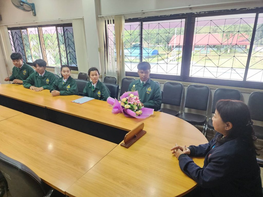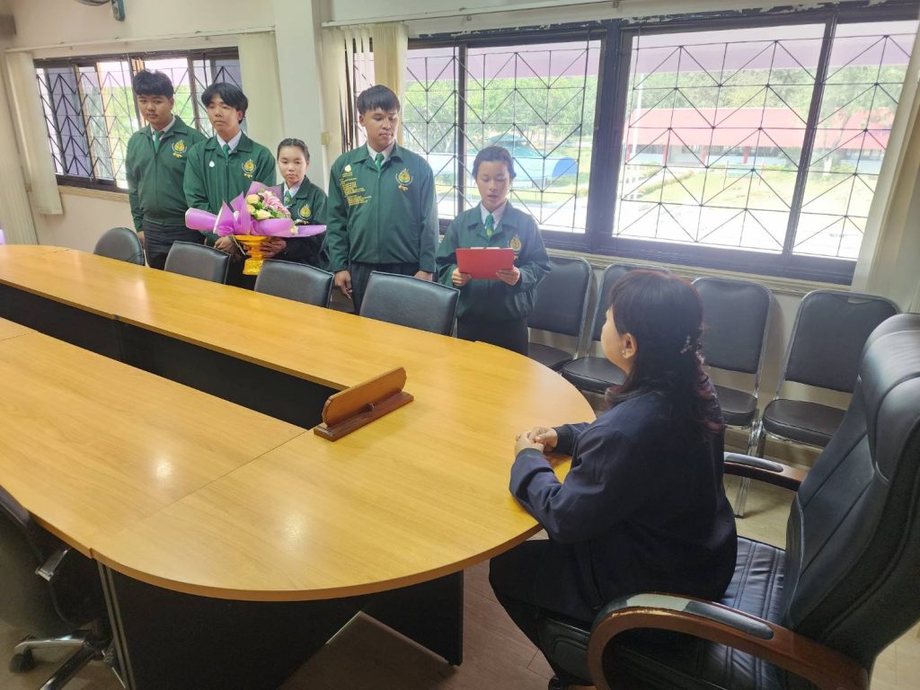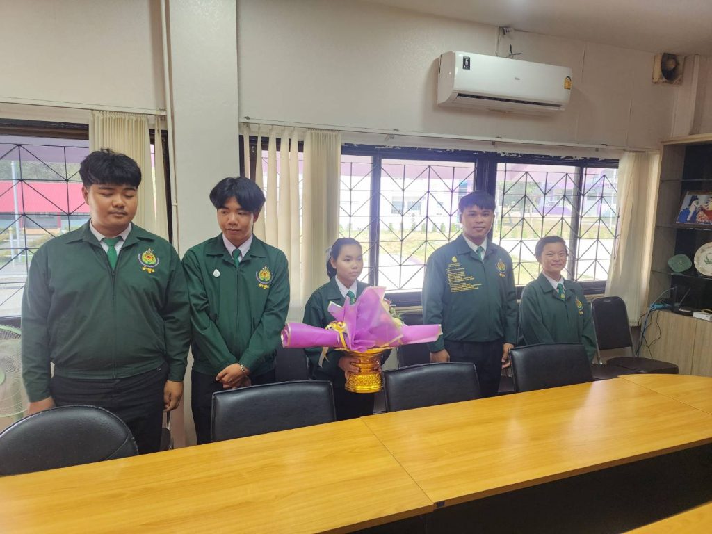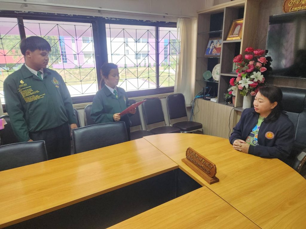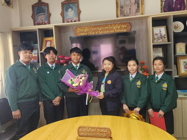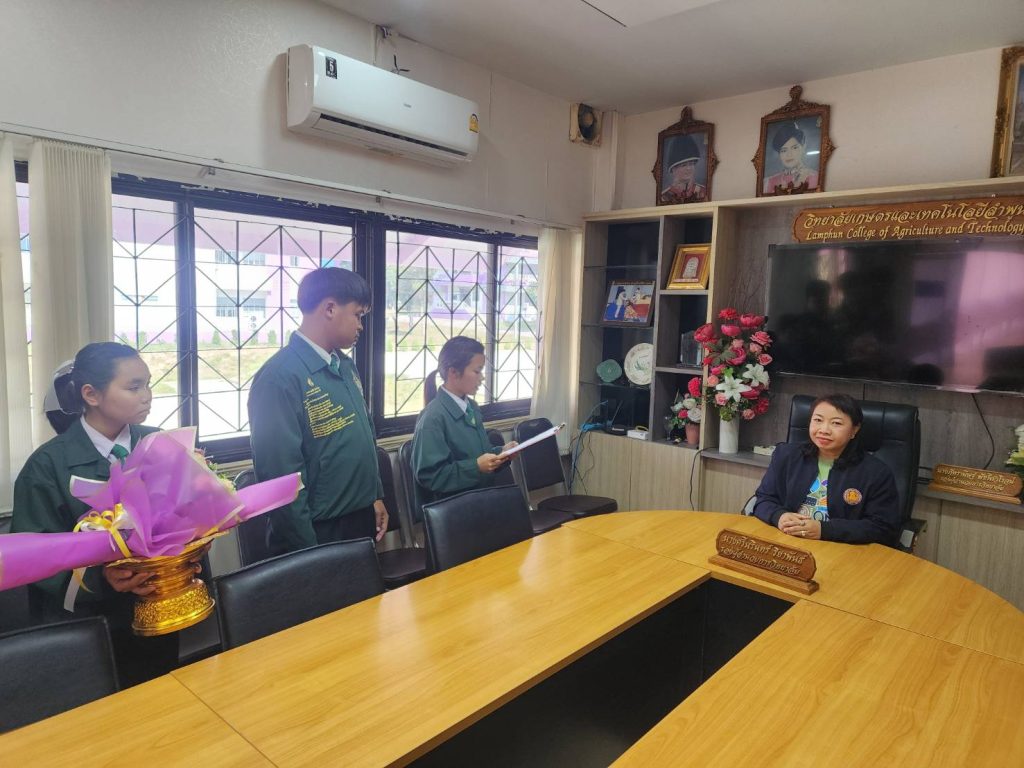 วันที่ 10 มกราคม 2568 นางศรีนรินทร์ ริยาพันธ์ รองผู้อำนวยการวิทยาลัยเกษตรและเทคโนโลยีลำพูน กล่าวแสดงกับ นายธรรรักษ์ อ้นบำรุง พร้อมด้วยสมาชิก เบอร์ 2 เนื่องในการได้รับเลือกเป็นนายก อกท.หน่วยลำพูน ประจำปีการศึกษา 2568 ณ ตึกอำนวยการ วิทยาลัยเกษตรและเทคโนโลยีลำพูน