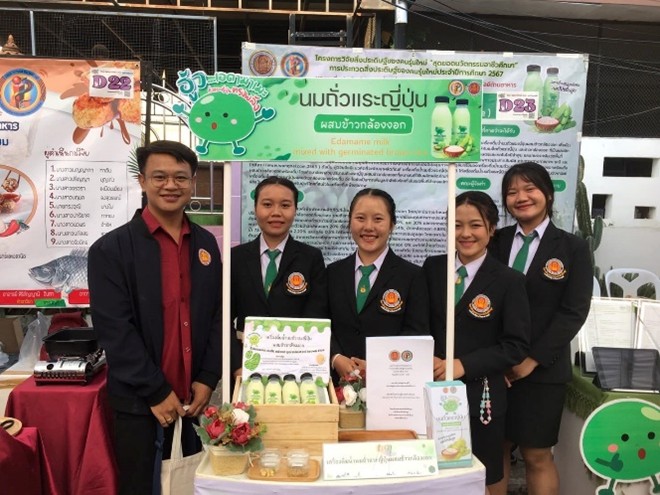 สิ่งประดิษฐ์ : เครื่องดื่มน้ำนมถั่วแระญี่ปุ่นผสมข้าวกล้องงอก (Edamame Milk Mixed with Germinated Brown Rice )