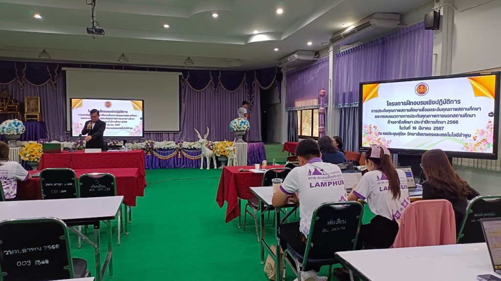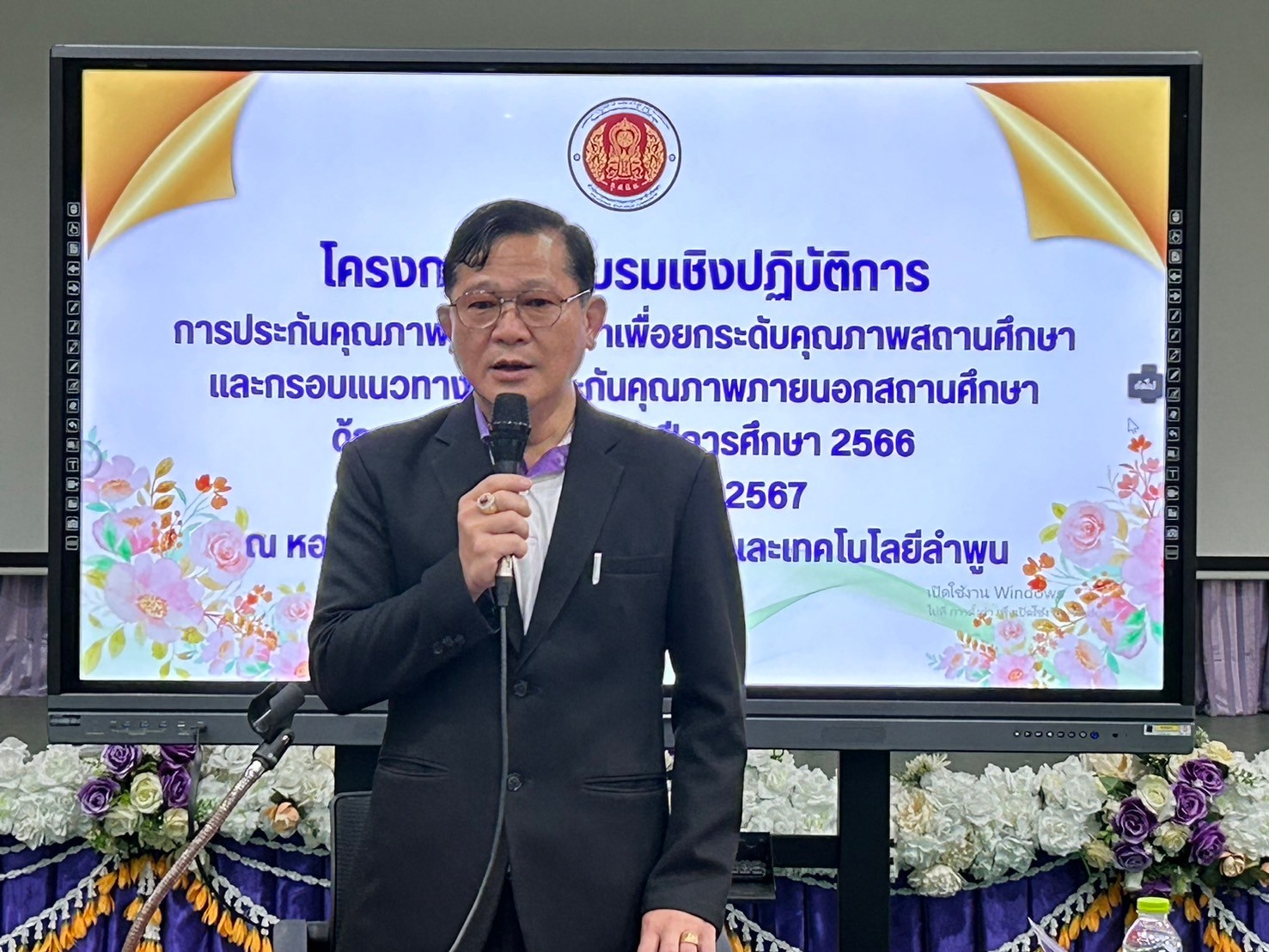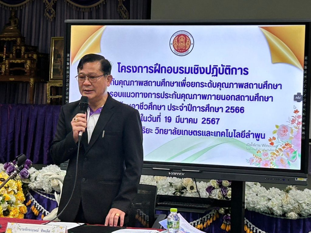 วันที่ 19 มีนาคม 2567 ดร.จักรกฤษณ์ ทิพเลิศ ผู้อำนวยการวิทยาลัยเกษตรและเทคโนโลยีลำพูน คณะผู้บริหาร ครู บุคลากรทางการศึกษา เข้าร่วมโครงการฝึกอบรมเชิงปฏิบัติการ การประกันคุณภาพสถานศึกษาเพื่อยกระดับคุณภาพสถานศึกษา และกรอบแนวทางการประกันคุณภาพภายนอก สถานศึกษาด้านอาชีวศึกษา ประจำปีการศึกษา 2566 โดยสำนักมาตรฐานการอาชีวศึกษาและวิชาชีพ สำนักงานคณะกรรรมการการอาชีวศึกษาได้จัดทำมือการขับเคลื่อนการประกันคุณภาพภายในด้านการอาชีวศึกษาระหว่างระบบการประกันคุณภาพภายในกับระบบการประกันคุณภาพภายนอก (ปรับปรุง 2567) เพื่อใช้เป็นตัวขับเคลื่อนการดำเนินงานของสำนักงานคณะกรรมการการอาชีวศึกษา ตลอดจนพัฒนาการประกันคุณภาพการศึกษาวิทยาลัยเกษตรและเทคโนโลยีลำพูน ดังนั้นเพื่อให้เกิดความเข้าใจ และทราบแนวทางการประกันคุณภาพการศึกษา วิทยาลัยลัยฯ จึงจัดโครงการฝึกอบรมเชิงปฏิบัติการ การประกันคุณภาพสถานศึกษาเพื่อยกระดับคุณภาพสถานศึกษา และกรอบแนวทางการประกันคุณภาพภายนอก สถานศึกษาด้านอาชีวศึกษา ประจำปีการศึกษา 2566 โดยมี นางสาวทรายทอง สมเป้า รองผู้อำนวยการชำนาญการพิเศษ วิทยาลัยเทคนิคลำพูน ได้ให้เกียรติมาเป็นวิทยากรในการอบรมครั้งนี้ ณ หอประชุมสุริยะ วิทยาลัยเกษตรและเทคโนโลยีลำพูน