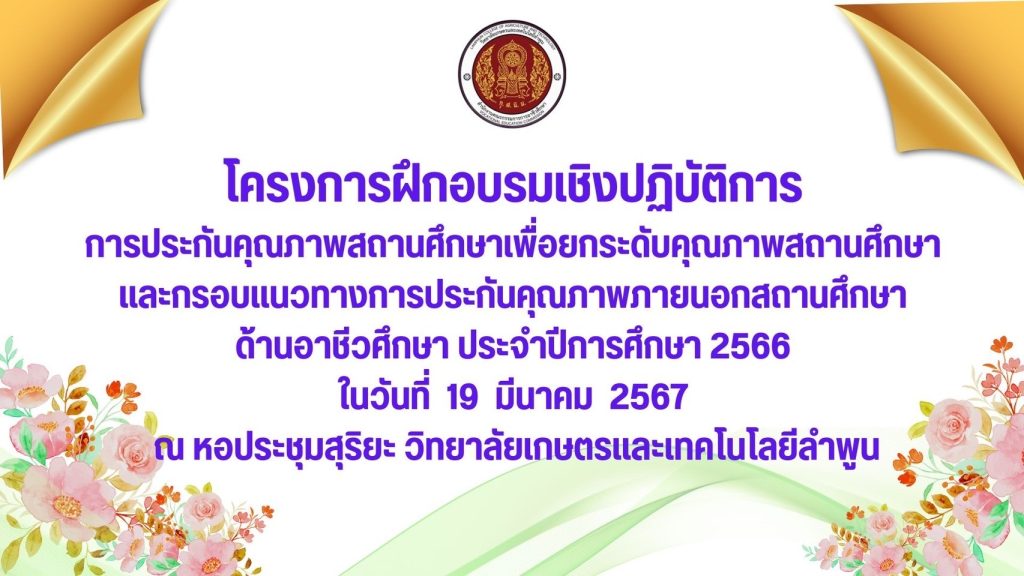โครงการฝึกอบรมเชิงปฏิบัติการ การประกันคุณภาพสถานศึกษาเพื่อยกระดับคุณภาพสถานศึกษา ด้านอาชีวศึกษา ประจำปีการศึกษา 2566