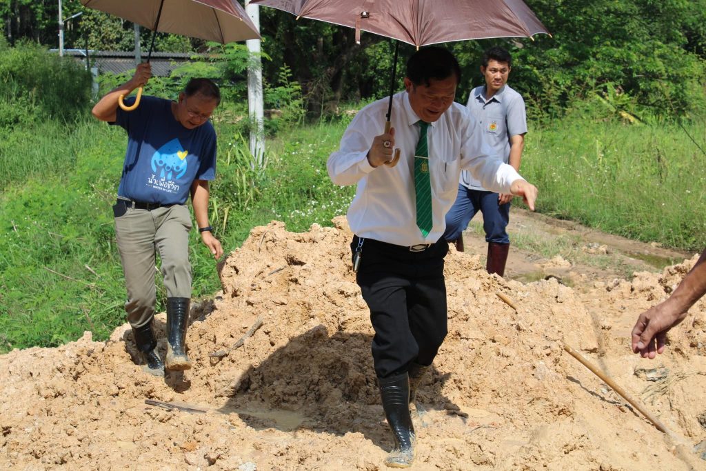 ให้การต้อนรับนายณัฏฐ์ พงศ์พูนสุขศรี คณะกรรมการบริหารโครงการบริหารจัดการน้ำ โดยชุมชน ตามแนวพระราชดำริและคณะ ในการตรวจมาตรฐานขนาดสระน้ำภายในวิทยาลัย