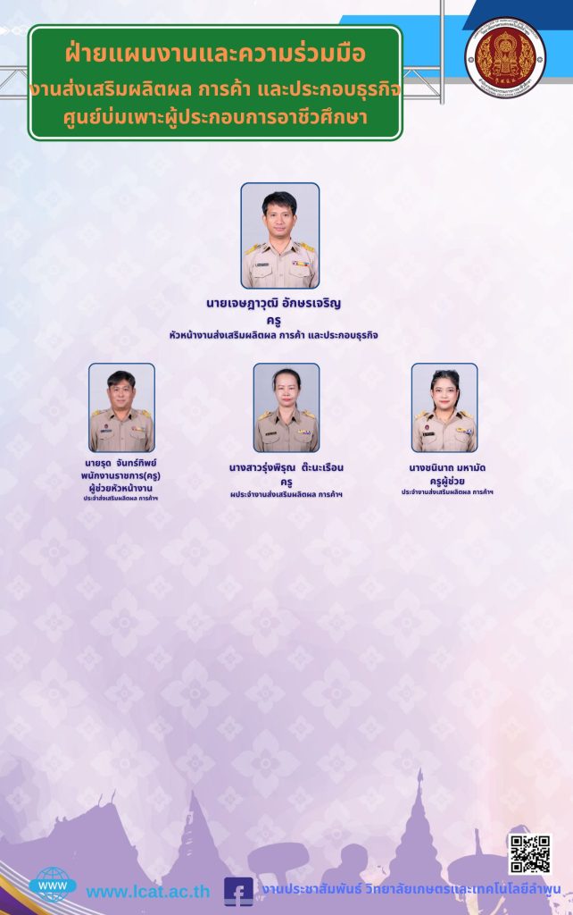 - ส่งเสริมให้ ครู นักเรียน นักศึกษา และบุคลากรในสถานศึกษาดำเนินงานส่งเสริมผลิตผล จัดทำแผนธุรกิจร่วมกับหน่วยงานภาครัฐและเอกชน ส่งเสริมการทำธุรกิจขนาดย่อม การประกอบอาชีพอิสระเพื่อสร้างรายได้ให้สอดคล้องกับการเรียนการสอน