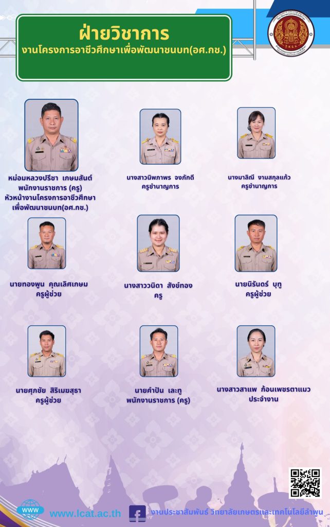 1. จัดทำแผนการจัดการเรียนการสอน ตารางเรียน ตารางฝึกอบรมสำหรับนักศึกษาในโครงการ อศ.กช.