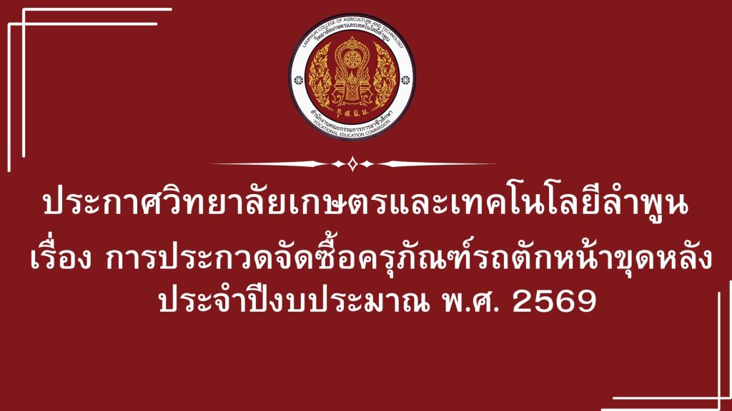 ประกาศ เรื่อง การประกวดจัดซื้อครุภัณฑ์รถตักหน้าขุดหลัง ประจำปีงบประมาณ พ.ศ. 2569