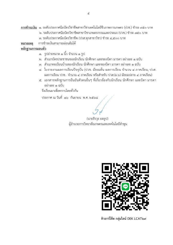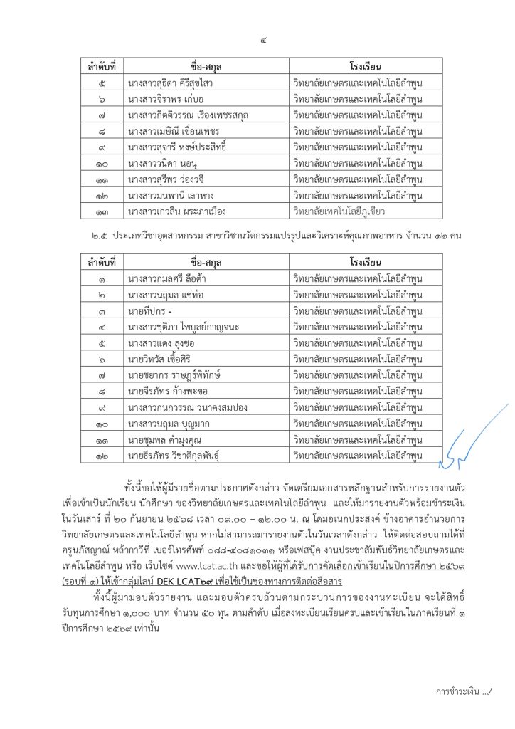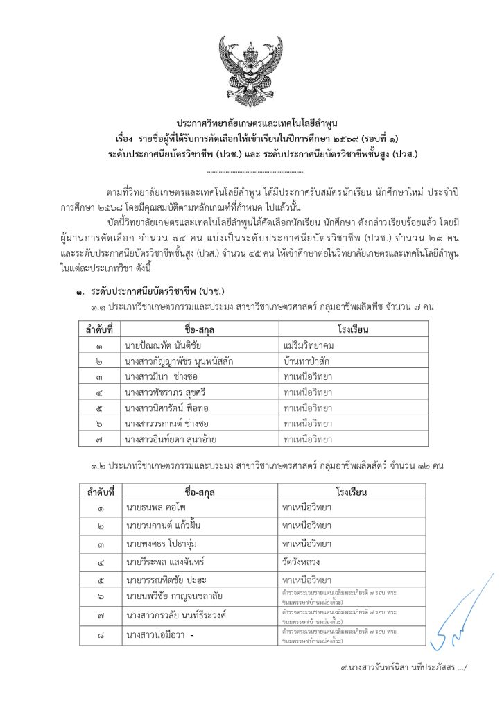 รายชื่อผู้ที่ได้รับการคัดเลือกให้เข้าเรียนในปีการศึกษา 2569 (รอบที่ 1)  ระดับประกาศนียบัตรวิชาชีพ (ปวช.) และ ระดับประกาศนียบัตรวิชาชีพชั้นสูง (ปวส.)