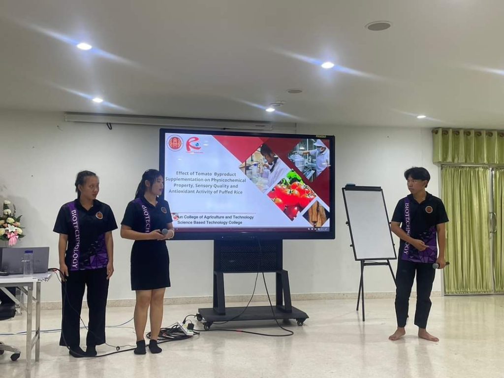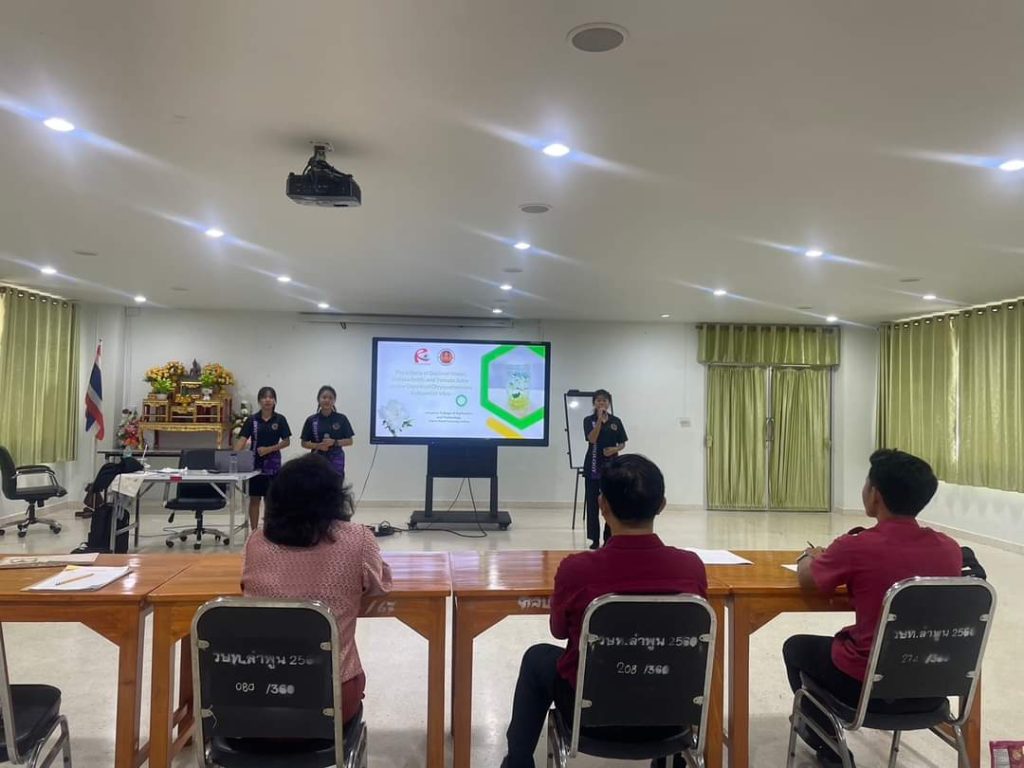 วันที่ 22 สิงหาคม 2567 ดร.จักรกฤษณ์ ทิพเลิศ ผู้อำนวยการวิทยาลัยเกษตรและเทคโนโลยีลำพูน พร้อมด้วย นางศรีนรินทร์ ริยาพันธ์ รองผู้อำนวยการฝ่ายบริหารทรัพยากร ร่วมให้กำลังใจและคำแนะนำ นักเรียน นักศึกษา และครูผู้ควบคุมการฝึกซ้อม เพื่อแข่งขันการนำเสนอผลงาน ในงานประชุมวิชาการนานาชาติ โครงการวิทยาลัยเทคโนโลยีฐานวิทยาศาสตร์ ครั้งที่ 9″ ระหว่างวันที่ 27 – 30 สิงหาคม 2567 ที่จะจัดขึ้นที่ เชียงใหม่แกรนด์วิวโฮเทล แอนด์ คอนเวนชั่น เซ็นเตอร์จังหวัดเชียงใหม่ ณ อาคารอเนกประสงค์ วิทยาลัยเกษตรและเทคโนโลยีลำพูน