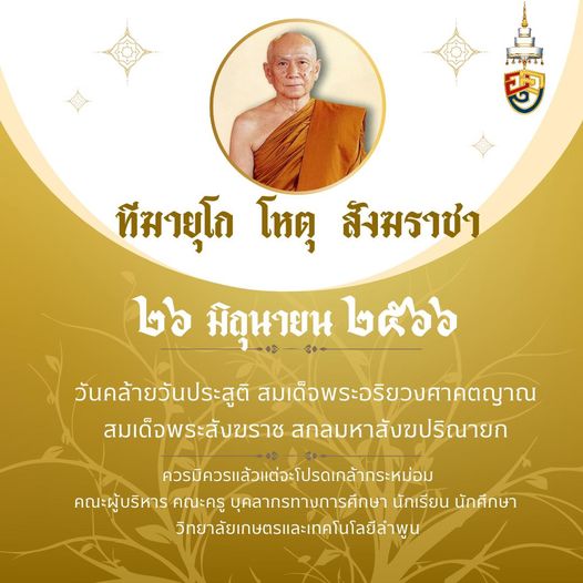 26 มิถุนายน 2566 วันคล้ายวันประสูติ สมเด็จพระอริยวงศาคตญาณ สมเด็จพระสังฆราช สกลมหาสังฆปริณายก ควรมิควรแล้วแต่จะโปรดเกล้ากระหม่อม คณะผู้บริหาร คณะครู บุคลากรทางการศึกษา นักเรียน นักศึกษา วิทยาลัยเกษตรและเทคโนโลยีลำพูน