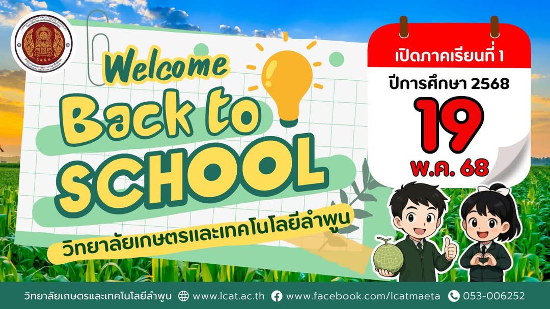 Welcome To School วิทยาลัยเกษตรและเทคโนโลยีลำพูน เปิดภาคเรียนที่ 1 ปีการศึกษา 2568 ในวันจันทร์ที่ 19 พฤษภาคม 2568